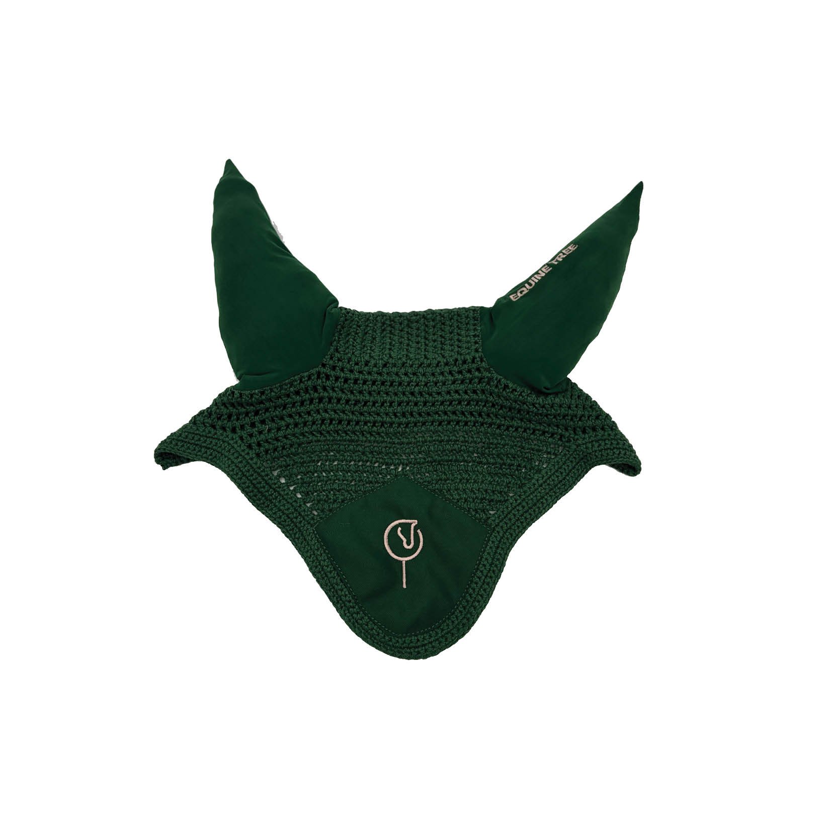 Le Bonnet Anti-Mouches Verdail vert d’Equinetree. Un bonnet anti-mouches élégant et sportif conçu pour le confort et la concentration de votre cheval.