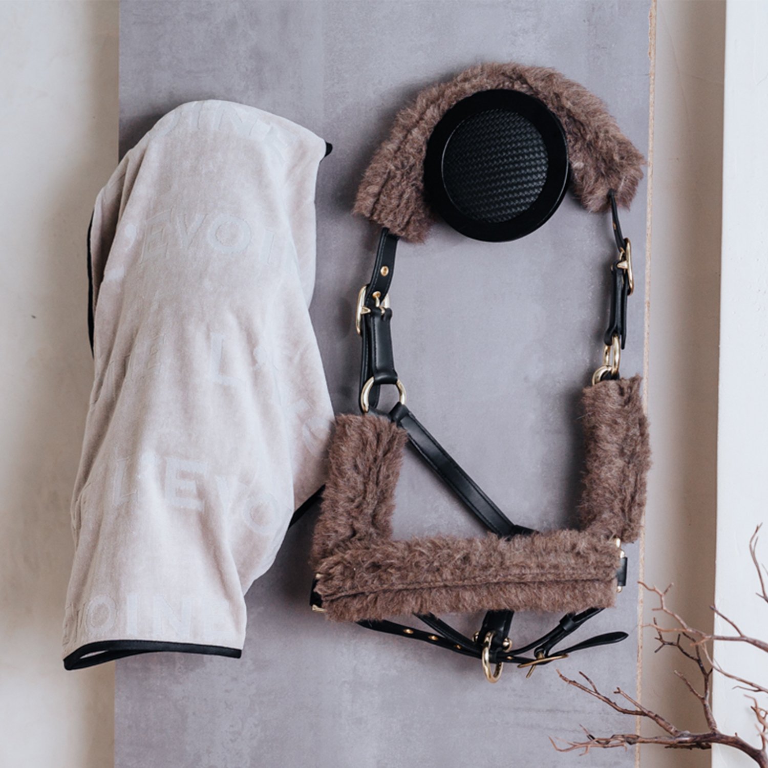Découvrez l’alliance parfaite entre innovation écologique et confort luxueux avec le licol Equinetree, associé aux protections en polaire d’alpaga premium de L’Evoine.