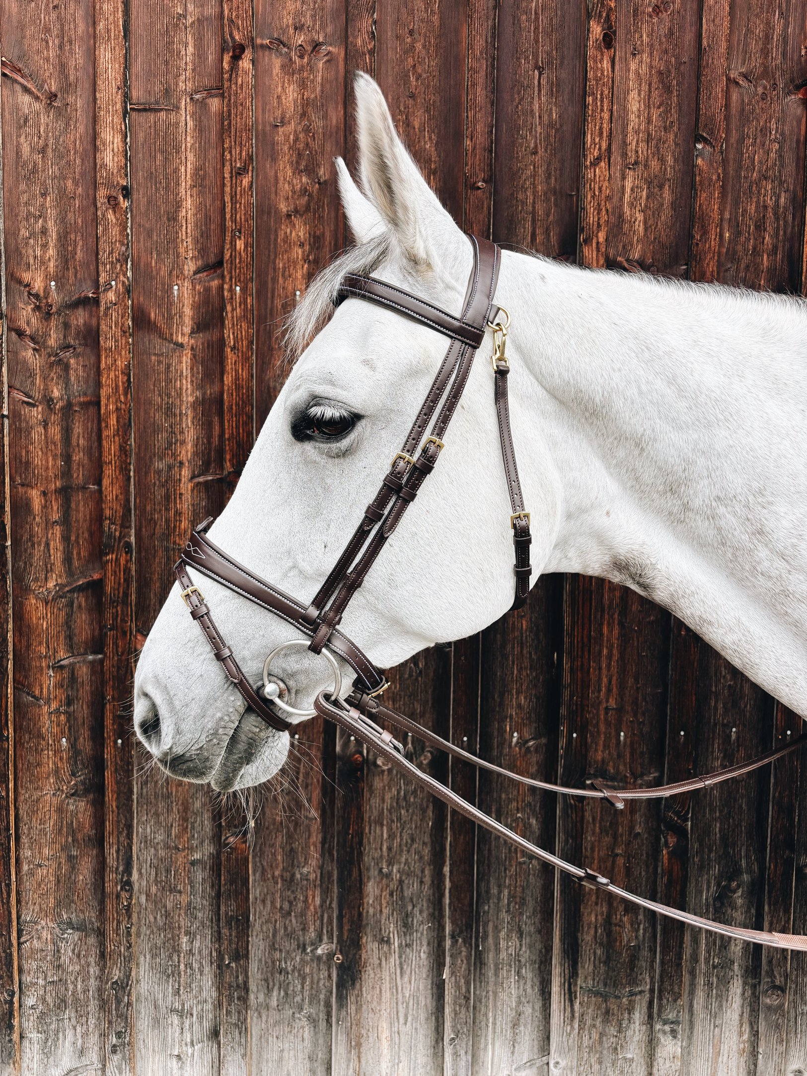 The bridle “Mela with T-Strap”, made from the innovative material Uppeal, combines sustainable materials with a functional and clever design. It comes in two looks: classic black for simple chic and warm brown with decorative stitching for a touch of extravagance. The flash strap can be quickly and effortlessly removed without leaving any annoying residues, while the throatlash can be detached or attached as needed – whether for relaxed riding, training, or for the big moment in the competition arena. The “Mela with T-Strap” bridle stands not only for a sustainable choice but also for a flexible and comfortable riding experience. Casual, smart, and versatile in use.