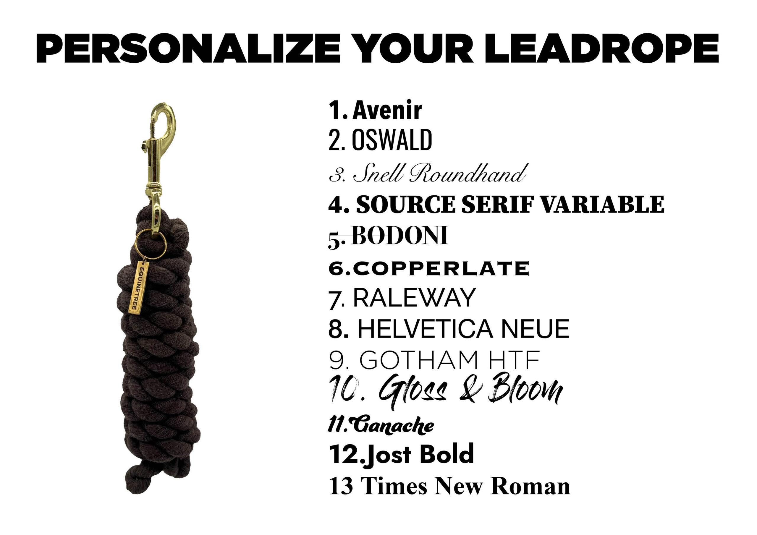 Crafted from premium braided cotton, this durable lead rope combines classic equestrian style with a personal touch. Featuring a solid brass snap hook and a customizable metal tag, you can add your horse’s name, farm name, or a special message to make it uniquely yours.