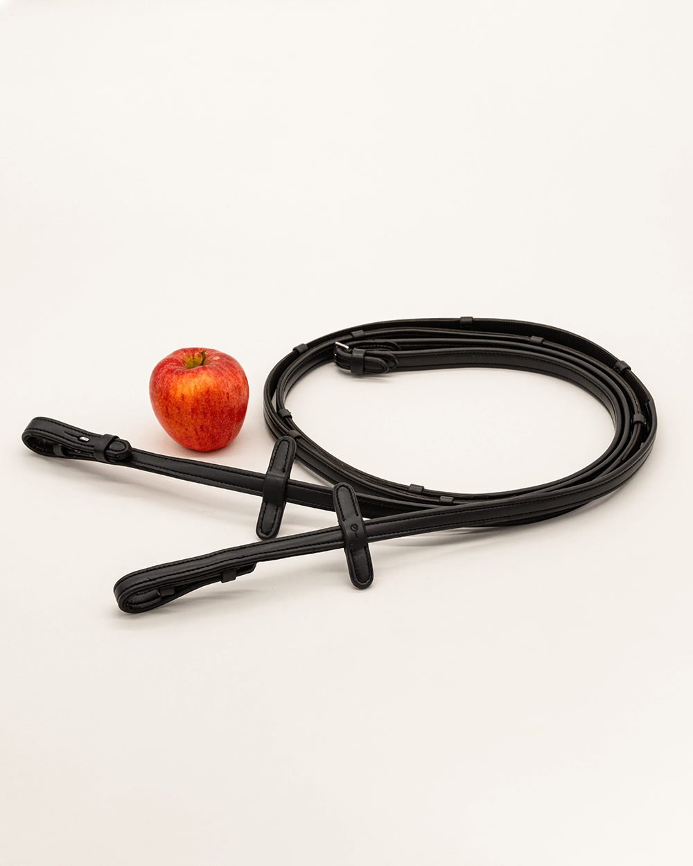 Our plant-based reins are designed for maximum control and a comfortable riding experience. With a rubber underlay supported by bars, they provide slip-proof performance, ensuring a secure ride. Crafted from durable Uppeal (Bio-Leather), they offer a comfortable grip, making them ideal for sensitive hands during extended rides. ✔ Slip-proof & secure: Rubber underlay with bars for optimal grip ✔ Sustainable material: Made from cruelty-free Uppeal – a premium alternative to leather ✔ Durable craftsmanship: Equipped with a bridle hook buckle and stainless steel fittings for added security and longevity