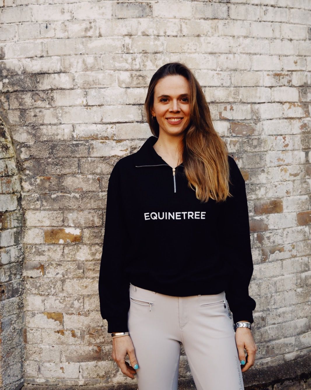 This sweater features a relaxed quarter-zip design in a textured, waffle-knit fabric. The bold EQUINETREE logo across the chest lends a modern, sporty look, while the dropped shoulders and elasticated hem create a comfortable yet stylish silhouette. Its lightweight construction makes it easy to layer—perfect for both casual wear and equestrian pursuits